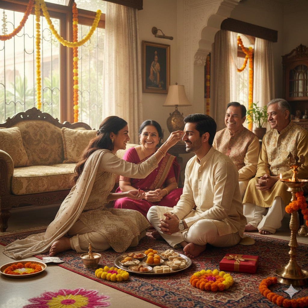 As Bhai Dooj arrives, homes are filled with a unique glow and energy. The flicker of lamps and the sweetness of sibling bonds converge into one celebration. On this day, a sister prepares a tilak for her brother, and the brother smiles, embracing the sense of responsibility hidden in that small ritual. This festival is not just a symbol of love between siblings—it conveys trust, protection, and walking together in each other’s happiness.